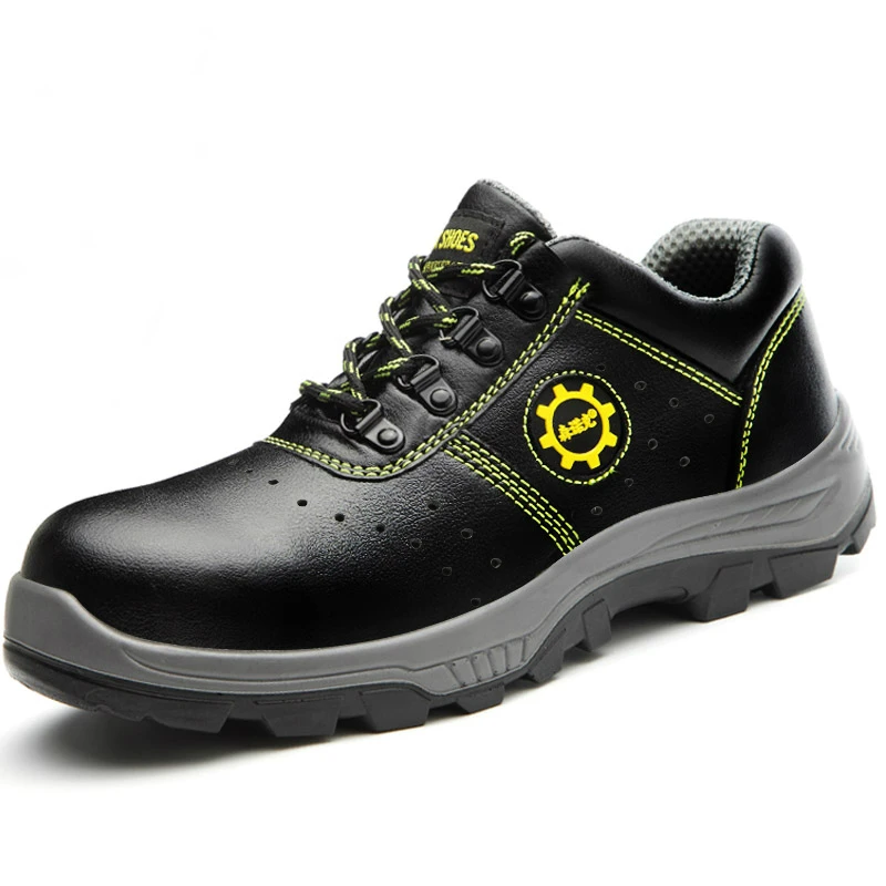large size men casual breathable steel toe cover working safety shoes summer cow leather shoe const