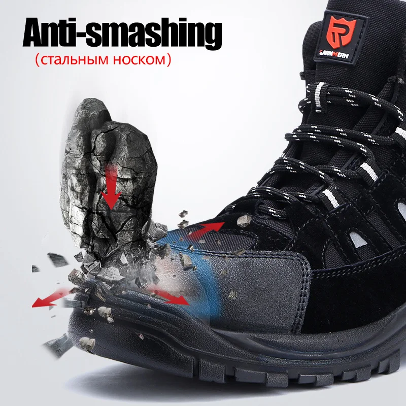 HIGH QUALITY LARNMERN Men's Work Safety Shoes Breathable Construction Protective Footwear Steel Toe Anti-smashin